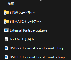下記の写真はお客さんに送付内容です。1番目はBINのショートカットで3番の貼り付け先です。2番目はアイコンの貼り付け先です。3番目は本ツールです。4番目は設定手順と動画のリンク(動画リンクは上の動画です)です。5番目と6番目はアイコンのファイルです。